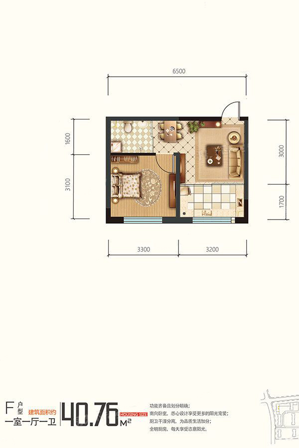 各个空间户型方正,后期空间利用率高;全明户型,各部分空间均有窗,可保证整体空间采光和通风,居住舒适度好;居室布局合理,通风良好,动静分离,兼顾到了卧室和卫生间的私密性;客厅、卧室、卫生间和厨房等主要功能间的尺寸以及比例适中,有利于采光和通风,居住起来舒适、方便;