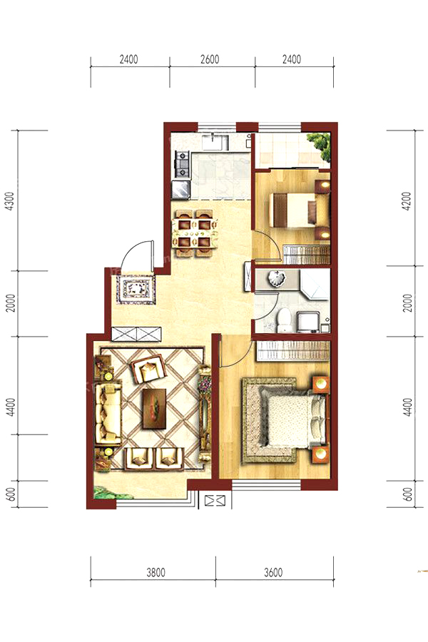 各个空间户型方正,后期空间利用率高;卫生间没有对外窗户;整个户型空间布局合理,做到了干湿分离、动静分离,方便后期生活;卧室厨卫等各个功能区的面积大小都比较合理,居住体验便利,整体舒适度高;