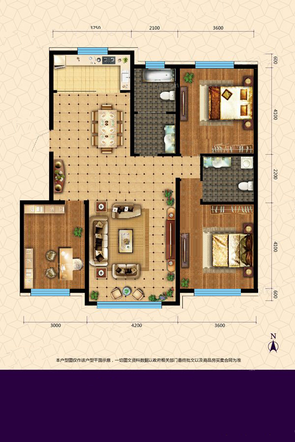各个空间户型方正,后期空间利用率高;全明户型,各部分空间均有窗,可保证整体空间采光和通风,居住舒适度好;居室布局合理,通风良好,动静分离,兼顾到了卧室和卫生间的私密性;客厅、卧室、卫生间和厨房等主要功能间的尺寸以及比例适中,有利于采光和通风,居住起来舒适、方便;