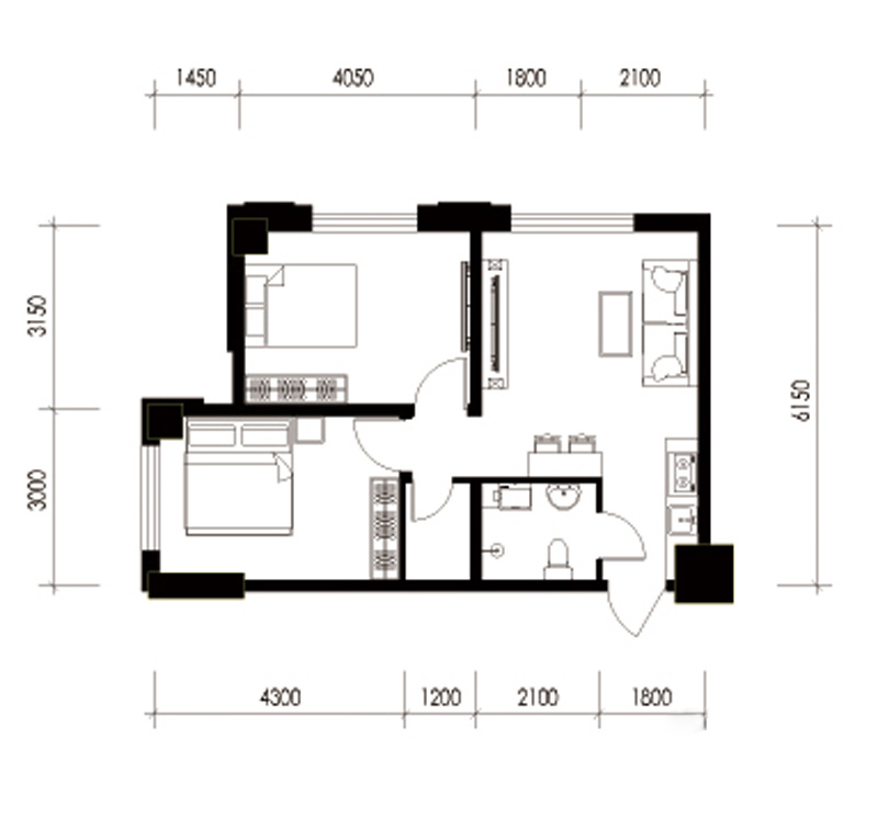 各个空间户型方正,后期空间利用率高;卫生间如没有窗子,可加管道通风,但是相对来说卫生间有窗户是好的情况,利于排湿,不会使湿气进到室内。整个户型空间布局合理,做到了干湿分离、动静分离,方便后期生活;各个功能区的尺寸比例规范,布局合理,能很好地满足日常功能需求,整体空间开阔,采光充足,居住舒适度好;