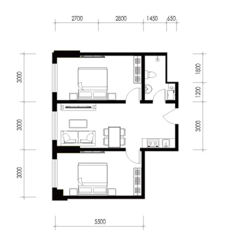 整体户型方正,活动区域开阔,居住舒适度高;南北不通透的户型,后期居住时常开门通风换气即可;卫生间如没有窗子,可加管道通风,但是相对来说卫生间有窗户是好的情况,利于排湿,不会使湿气进到室内。整个户型空间布局合理,做到了干湿分离、动静分离,方便后期生活;客厅、卧室、卫生间和厨房等主要功能间的尺寸以及比例