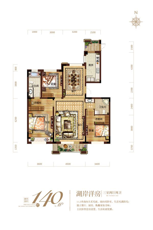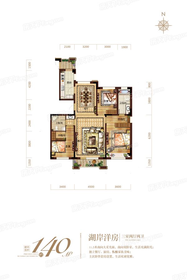 各个空间户型方正,方便室内家具布置;整个空间全明通透,采光良好,同时利于居住空间通风;整体空间布局合理,能够保证动静分离和居室通风,方便使用;各个功能区的尺寸比例规范,布局合理,能很好地满足日常功能需求,整体空间开阔,采光充足,居住舒适度好;