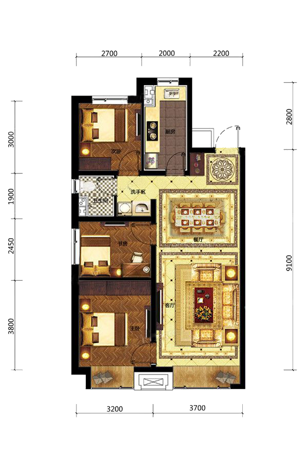 各个空间户型方正,后期空间利用率高;全明通透户型,居住舒适度较高,整个空间采光充足,利于后期居住;整体空间布局合理,能够保证动静分离和居室通风,方便使用;卧室厨卫等各个功能区的面积大小都比较合理,居住体验便利,整体舒适度高;