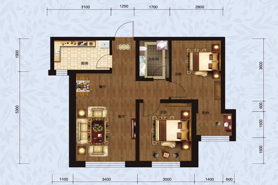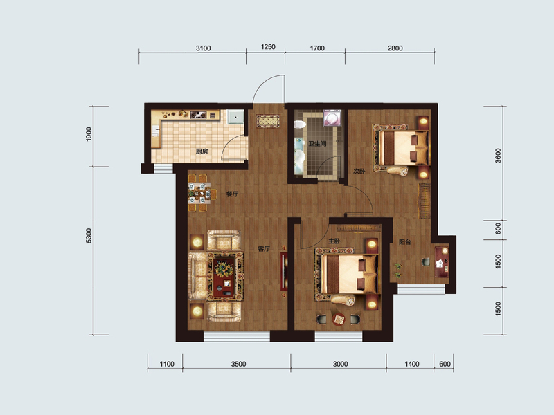 各个空间户型方正,方便室内家具布置;卫生间如没有窗子,可加管道通风,但是相对来说卫生间有窗户是好的情况,利于排湿,不会使湿气进到室内。居室布局合理,通风良好,动静分离,兼顾到了卧室和卫生间的私密性;客厅、卧室、卫生间和厨房等主要功能间的尺寸以及比例适中,有利于采光和通风,居住起来舒适、方便;