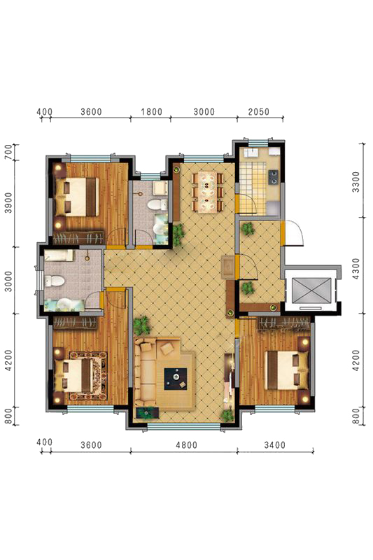 各个空间户型方正,方便室内家具布置;卫生间如没有窗子,可加管道通风,但是相对来说卫生间有窗户是好的情况,利于排湿,不会使湿气进到室内。居室布局合理,通风良好,动静分离,兼顾到了卧室和卫生间的私密性;卧室厨卫等各个功能区的面积大小都比较合理,居住体验便利,整体舒适度高;