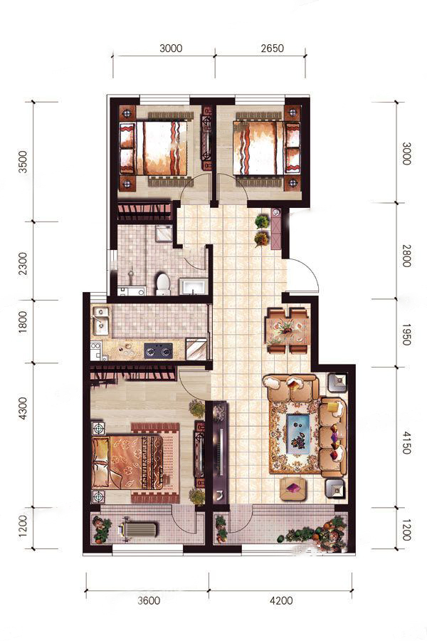 各个空间户型方正,方便室内家具布置;全明户型,各部分空间均有窗,可保证整体空间采光和通风,居住舒适度好;整体空间布局合理,能够保证动静分离和居室通风,方便使用;卧室厨卫等各个功能区的面积大小都比较合理,居住体验便利,整体舒适度高;